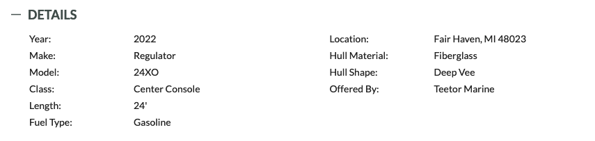 The latest addition to Regulator’s XO family delivers everything you need in a center console crossover. Fulfilling the XO promise of versatility and adventure, the 24XO gives you easy access to lakes, bays, and skinny waters, along with the capability to head offshore when the time is right. Anglers will love the abundant deck space, forward and aft casting platforms, standard livewell, and in-deck fishbox. The hull’s 16-inch draft, moderate deadrise, optional hydraulic jackplate, and Minn Kota® Riptide Ulterra® trolling motor make shallow-water maneuvering easy for fishing or sandbar fun. Equipped with a standard Yamaha F300, factory-installed Garmin® electronics, and signature Fiberglass T-Top with Integrated Wraparound Windshield, the 24XO is ready to go anywhere and do everything.