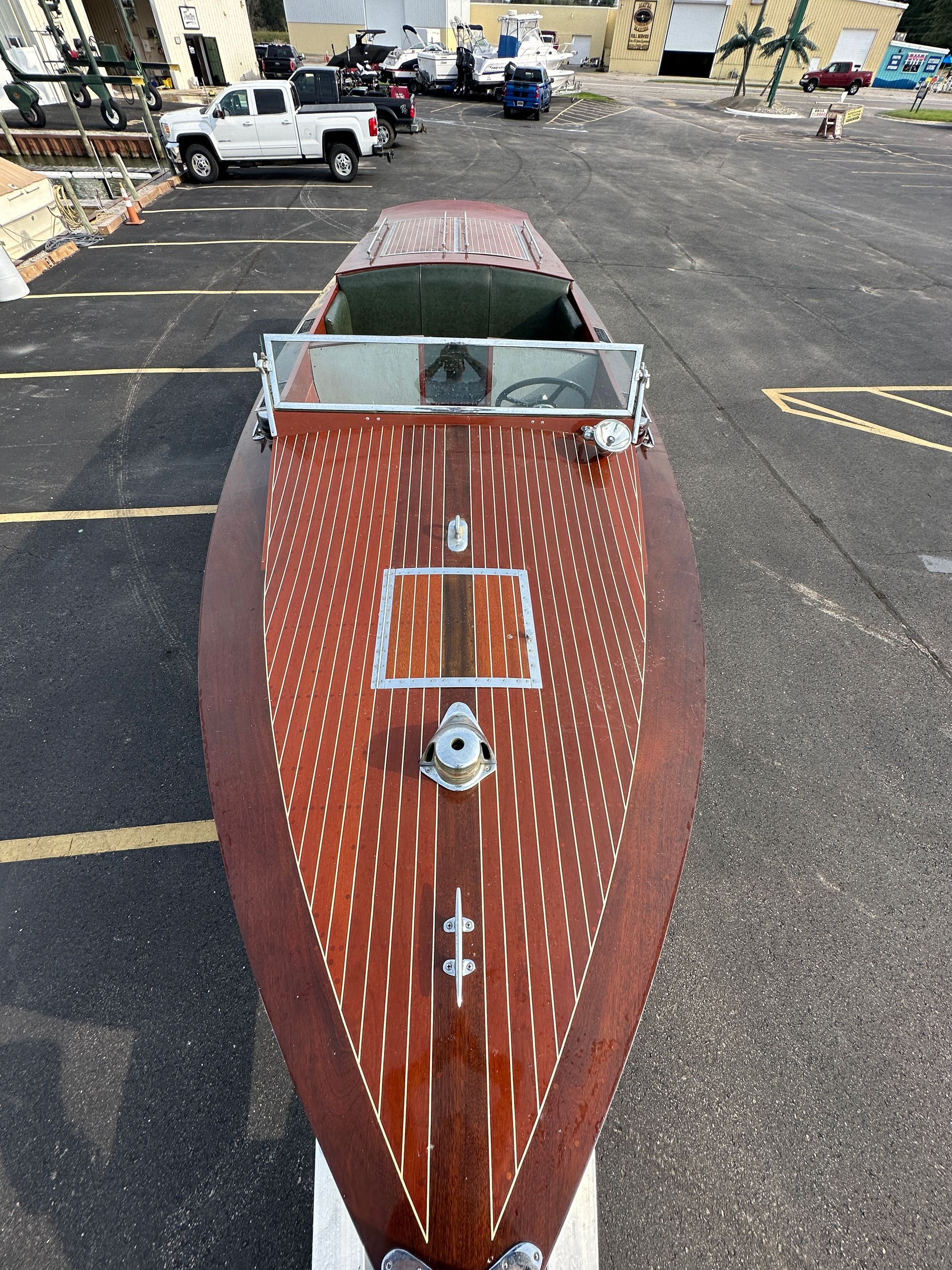 This rare 28' Custom Runabout by Chris-Craft is a great testimony to the origins of pleasure boating in the United States. Re-powered with a Chrysler 440 she's almost ready to hit the water again. A full survey is available upon request with all of the details needed to complete the restoration. Fully restored, you can expect to grab everyone's attention everywhere you go.