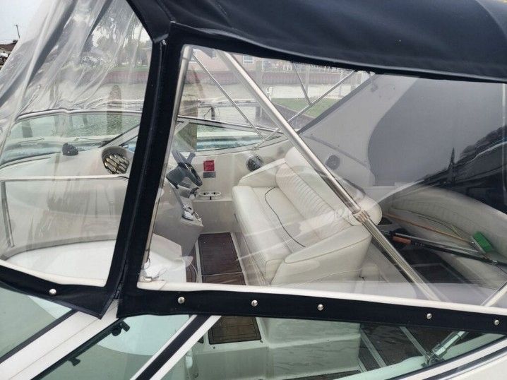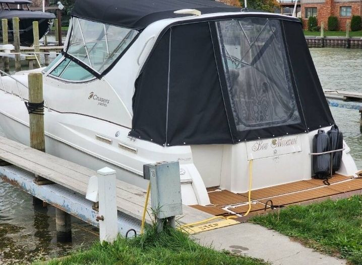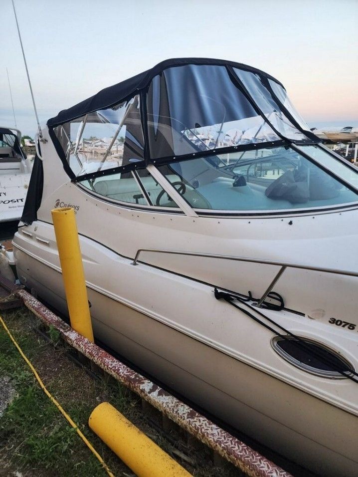 The Cruisers 3075 Express boasts impressive performance under both stern drive and inboard power. Smooth handling makes the 3075 a delight on the water, and her overnight accommodations ensure unsurpassed comfort should a day trip turn into a cruising adventure. Belowdecks, there is a full-service galley with refrigerator, microwave and electric stove. A crescent-shaped, convertible dinette / sofa and a large double forward berth with privacy curtains complete the salon cabin. The primary layout features a fixed midcabin double berth to maximize overnight accommodations. Owners can also select an alternate layout, which includes a comfortable aft settee and open living space. As an additional plus on longer trips, the head has full headroom and a roomy shower. A triple-wide helm seat, fore-and aft-facing cockpit lounge seating, and a convertible table / sunlounge make this boat perfect for on-the-water entertaining. The 3075 also comes equipped with an extended swim platform with boarding ladder and a cockpit shower.