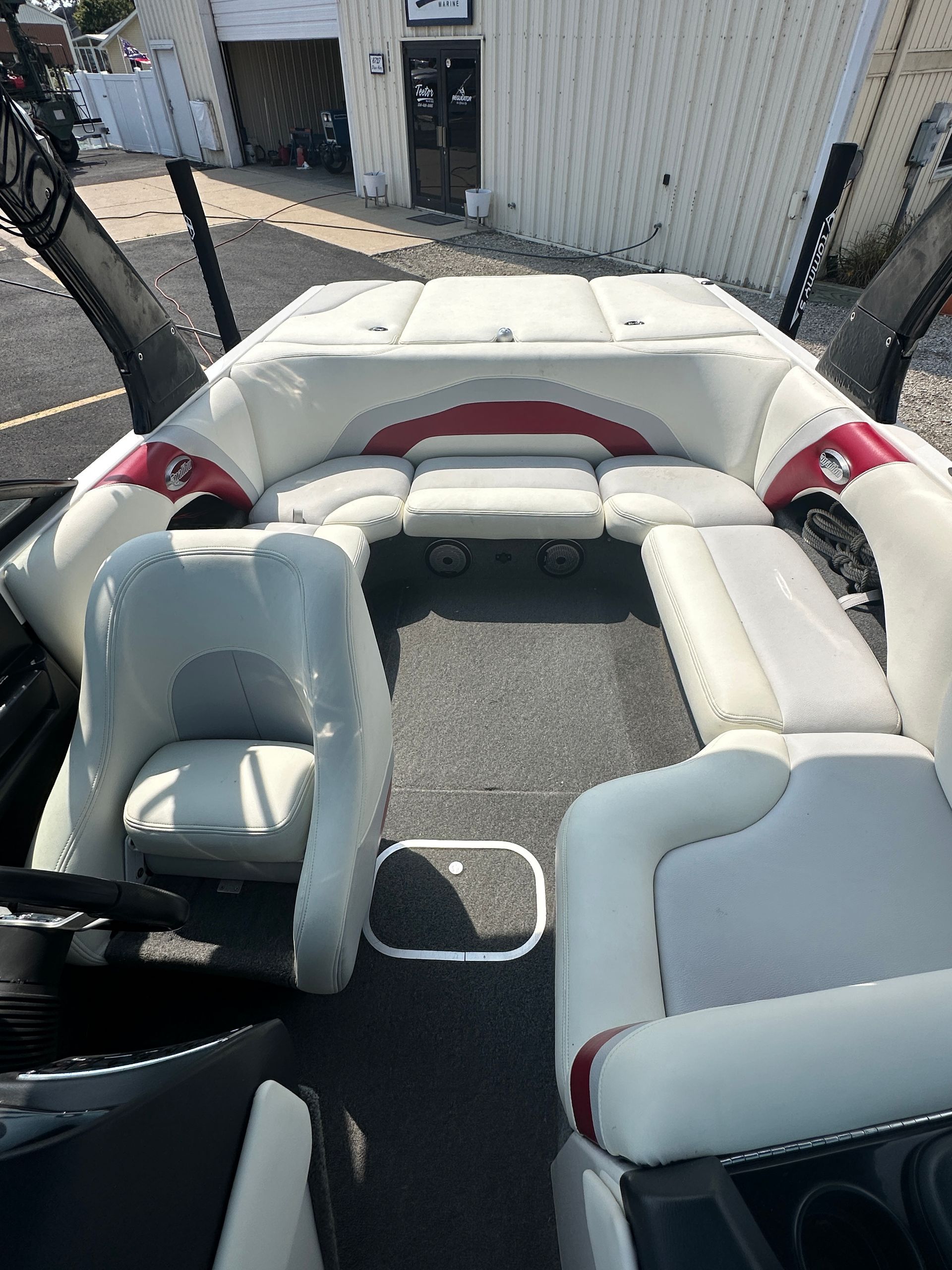 All freshwater with factory MLS ballast system. Brand new upholstery throughout, new mooring cover, and bimini top all completed in 2023. The boat is also being sold with the Mission Delta suction cup surf paddle. Board racks for the tower are included.