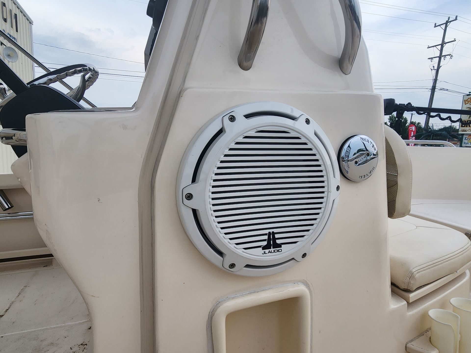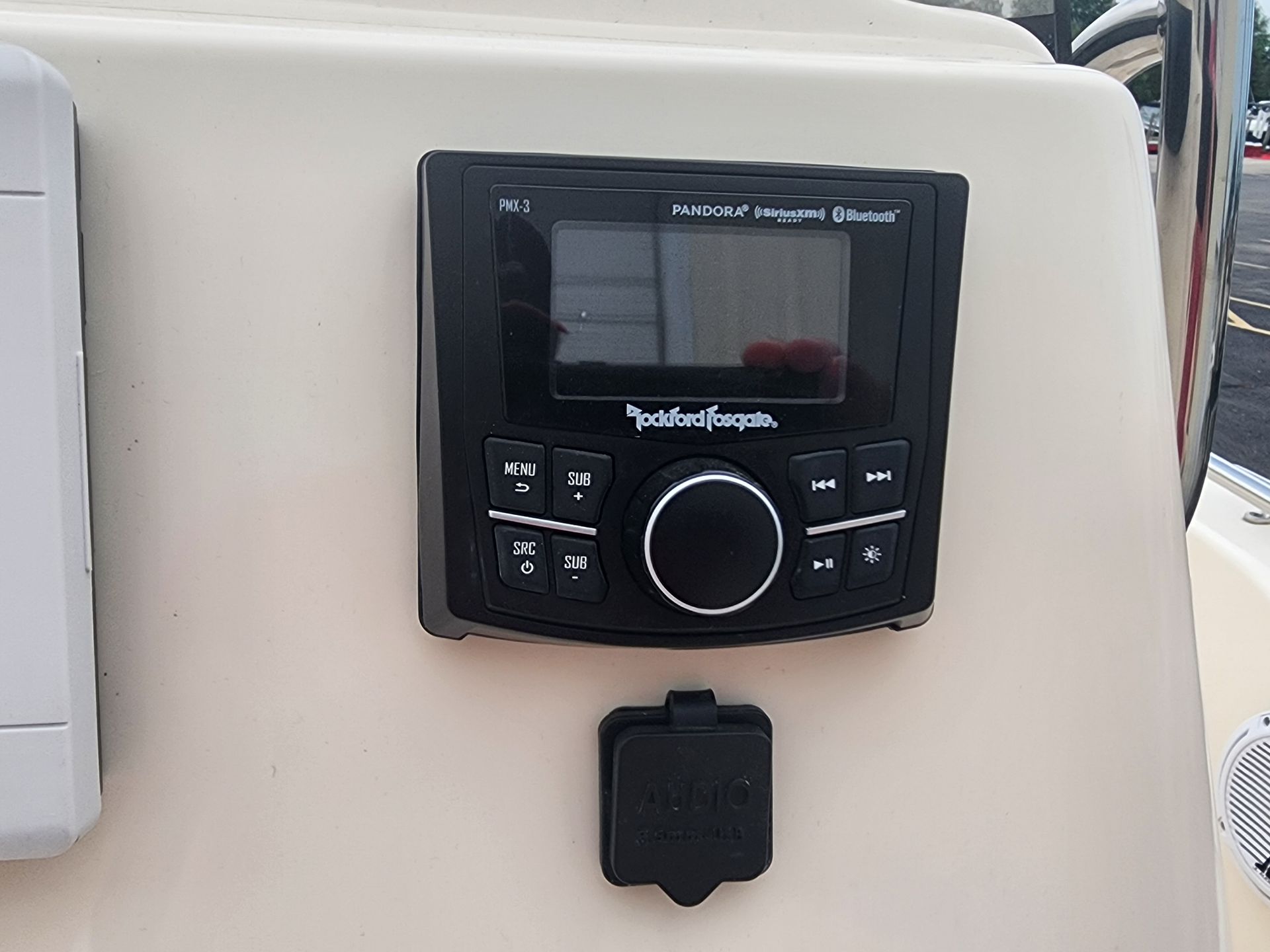 Upgraded Stereo System – Rockford Fosgate head unit with JL Audio speakers, subwoofer, and amplifier for premium marine sound