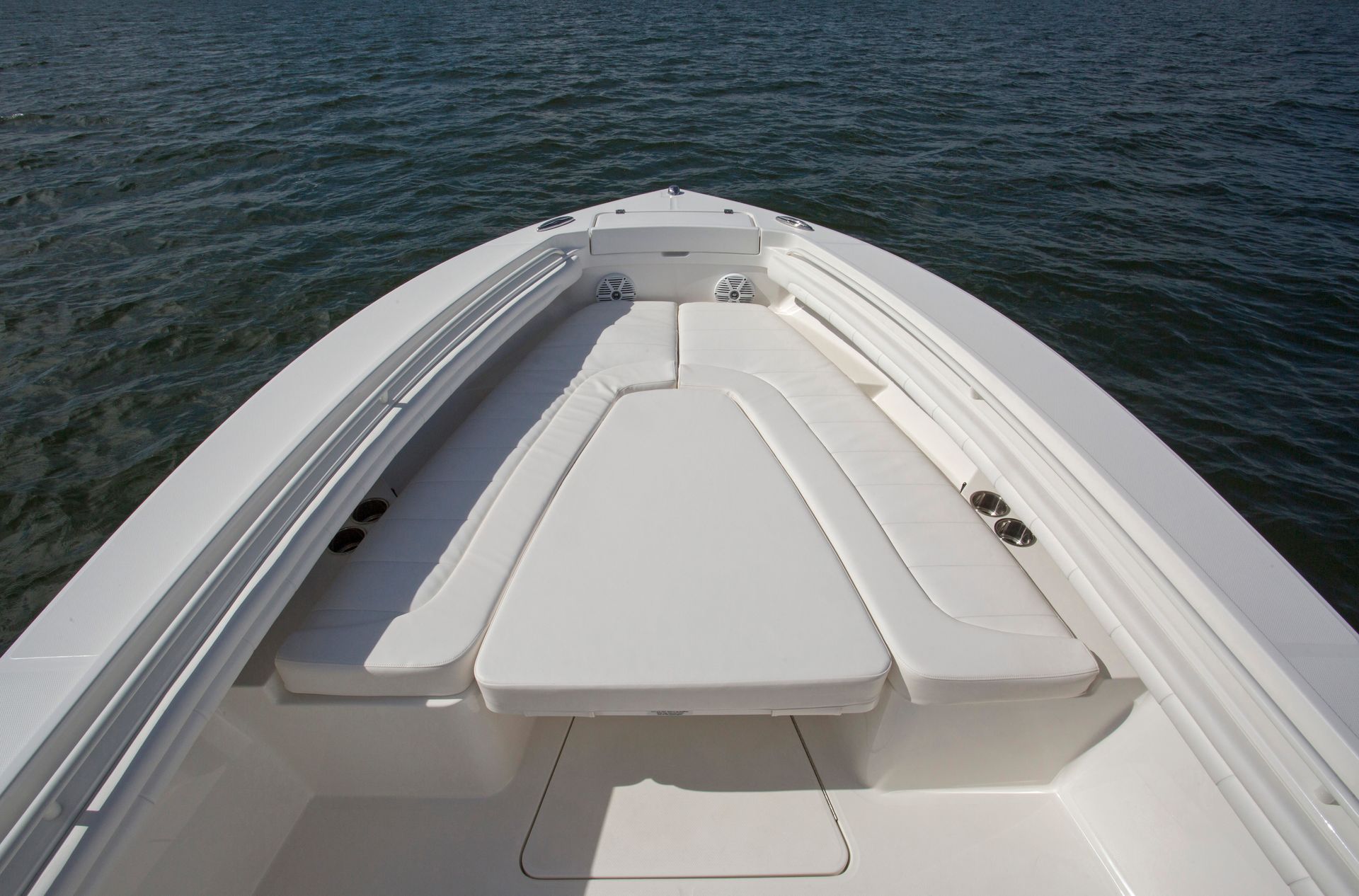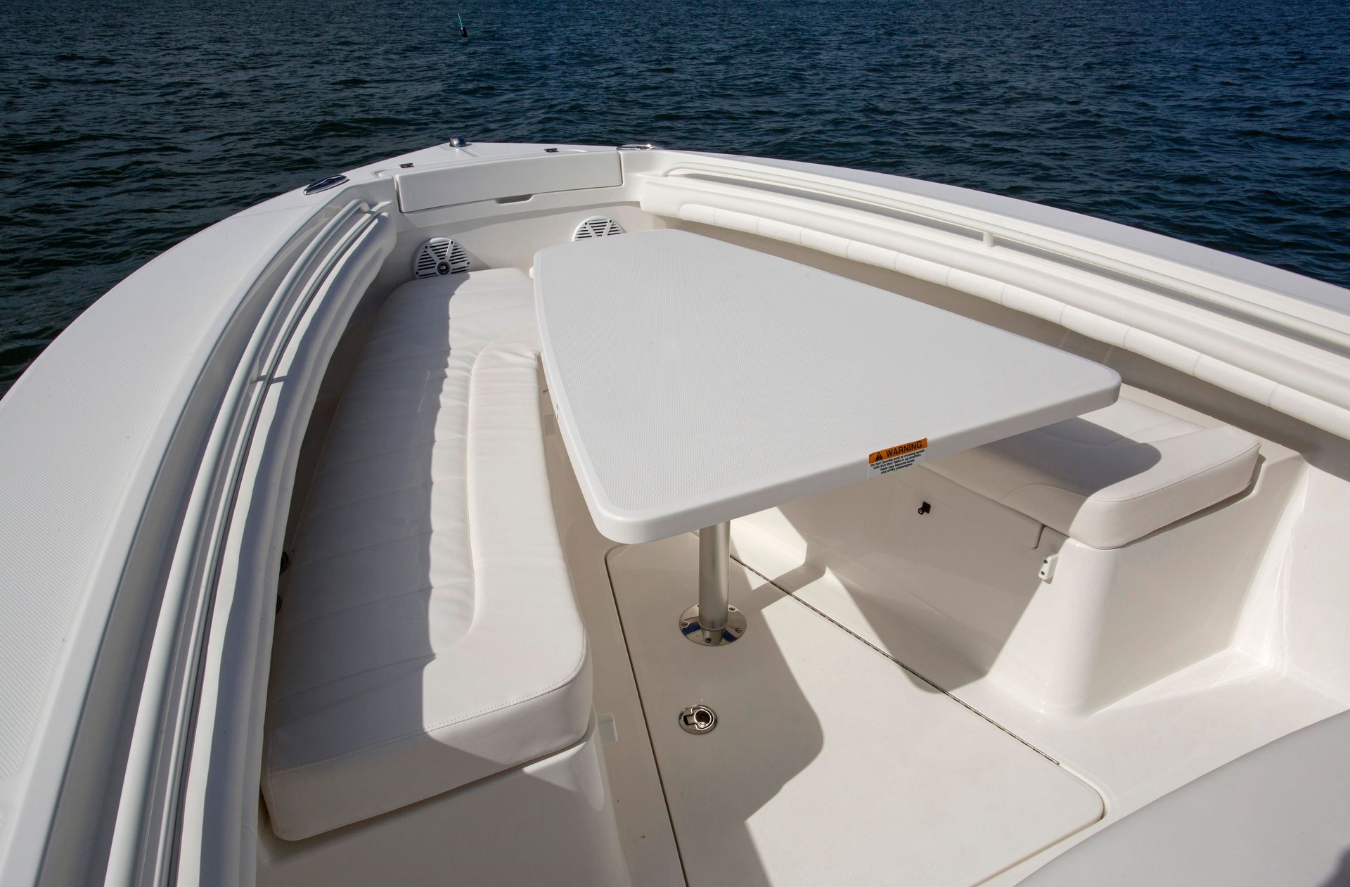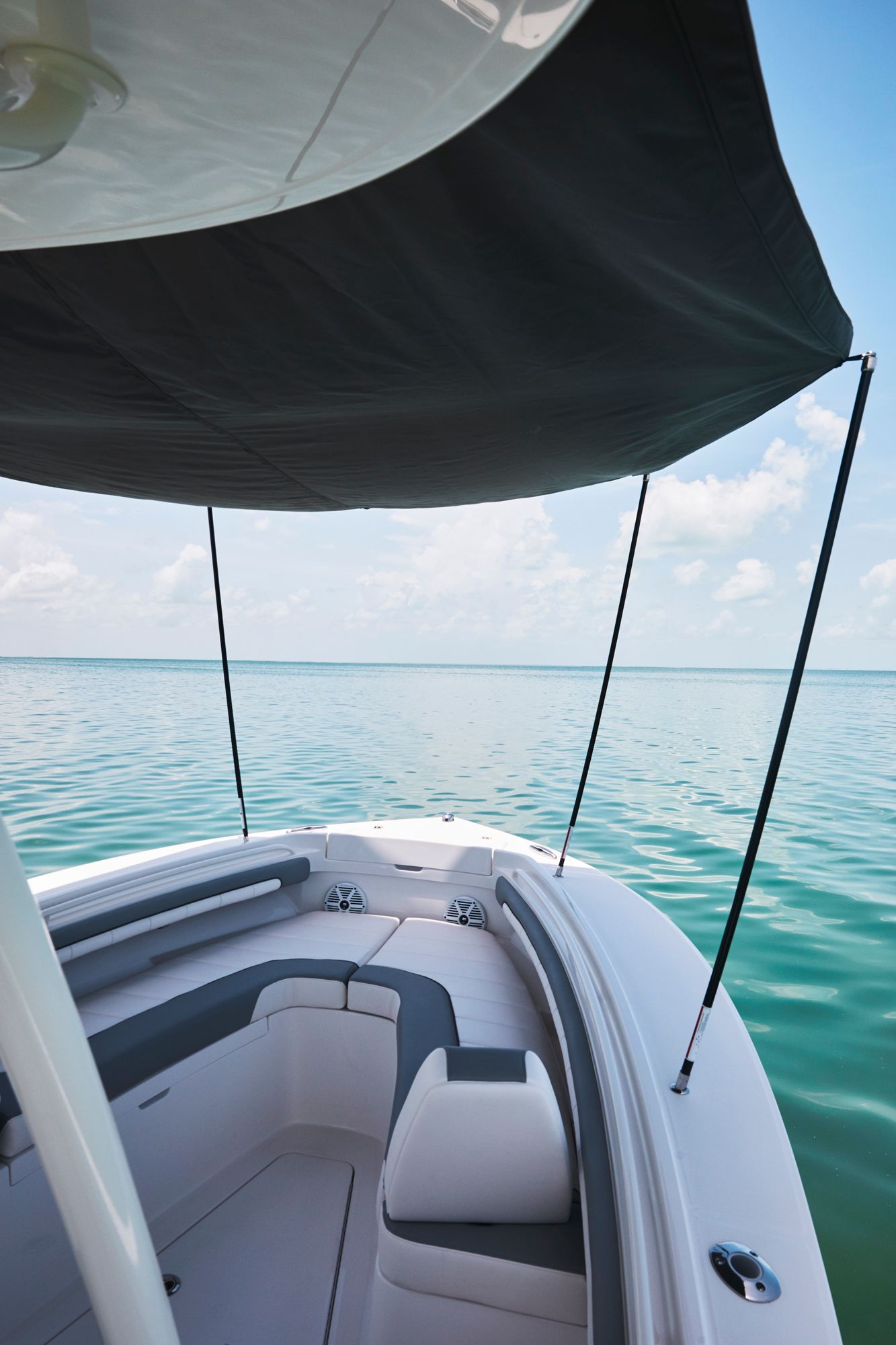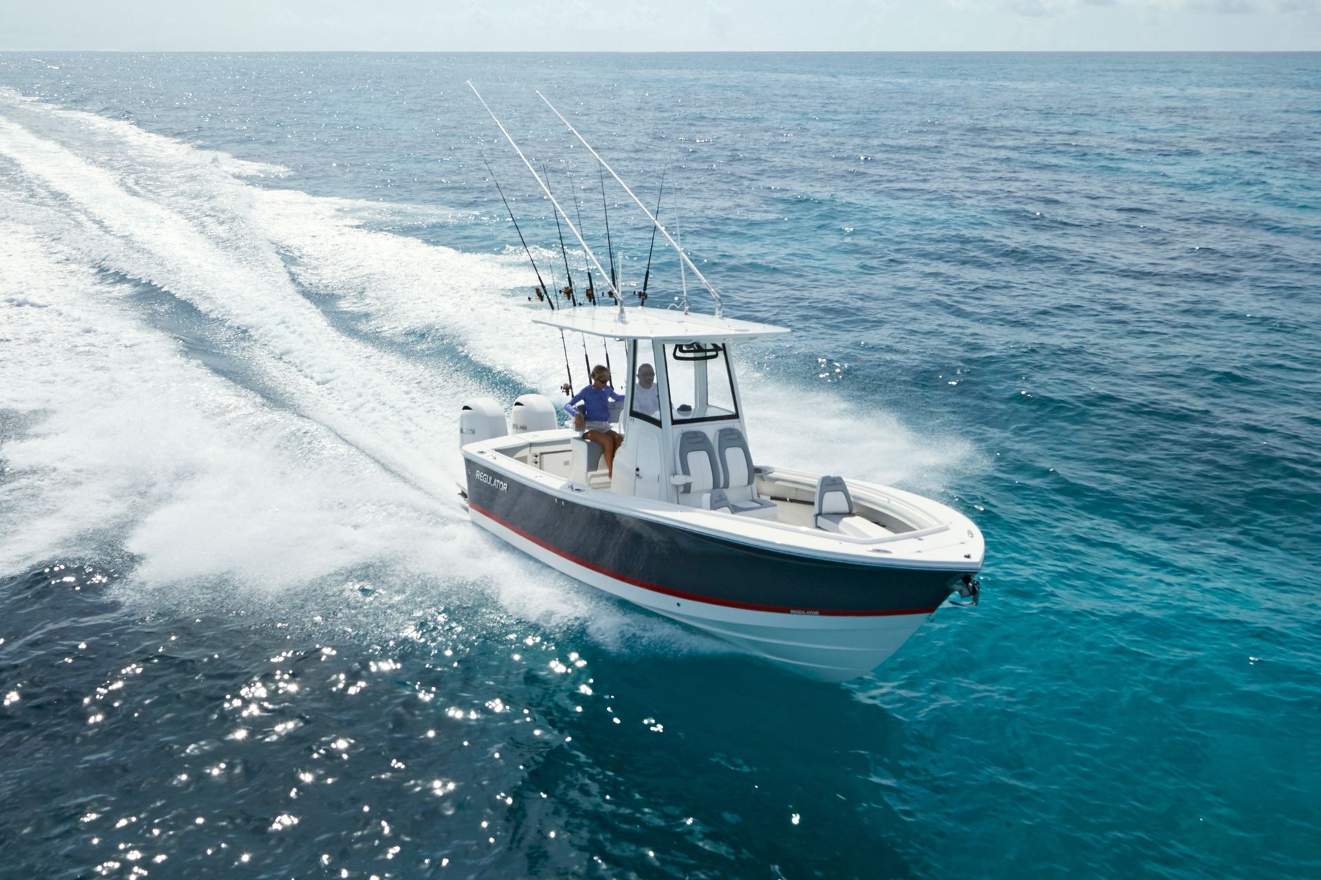 Whether you are ready for an offshore run or a casual day closer to shore, the 23 has you covered, offering unbelievable stability and comfort in true Regulator style. Powered with a single Yamaha 300 or optional twin Yamaha F150s, the Regulator 23 boasts big game fishing benefits, including a transom tuna door, 46-gallon fishbox/livewell, and 350-quart in-deck fishbox, along with a convenient rigging station and plenty of storage. Standard big boat features include our signature T-Top with integrated wraparound windshield for more protection at the helm and factory-installed Garmin® 16 Fish Package. The 23 also features abundant seating, built-in coolers, and a suite of optional amenities, including through stem bow roller with anchor windlass, head with electric tank pump out, removable watersports tow bar, and forward sun shade – ideal for entertaining and discovering the best of life on the water.