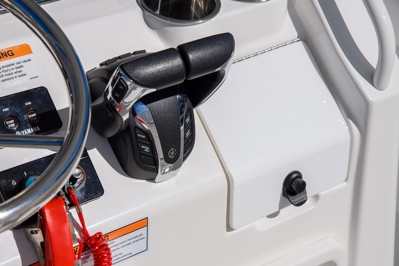 - Twin Yamaha F150 4-Stroke Engines with DEC and SeaStar Solutions® Optimus Electronic Power Steering with Tilt Helm