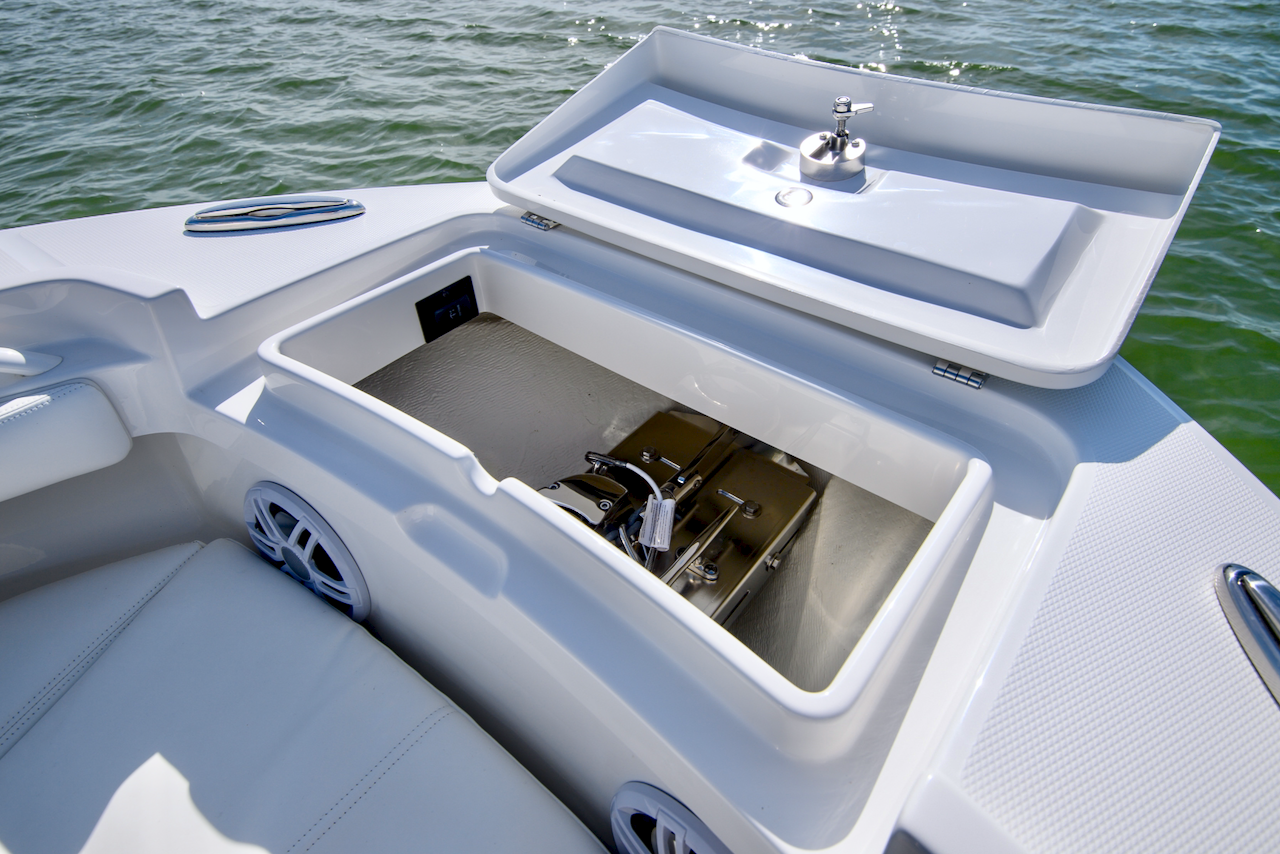 - In-Deck Illuminated, Macerated Fishbox/Locking Rod Storage