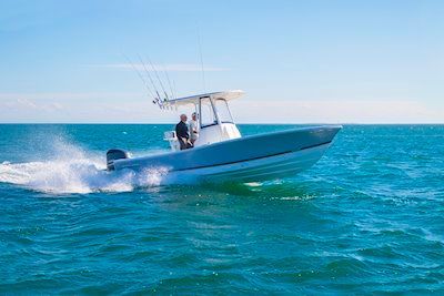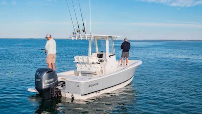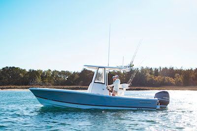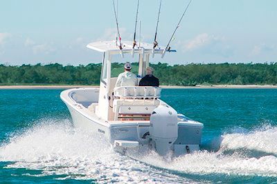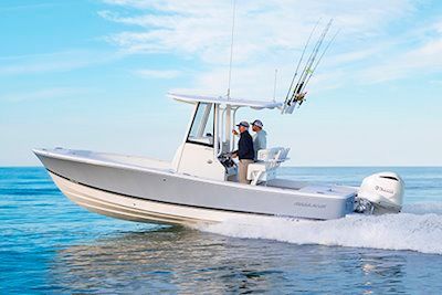 The latest addition to Regulator’s XO family delivers everything you need in a center console crossover. Fulfilling the XO promise of versatility and adventure, the 24XO gives you easy access to lakes, bays, and skinny waters, along with the capability to head offshore when the time is right. Anglers will love the abundant deck space, forward and aft casting platforms, standard livewell, and in-deck fishbox. The hull’s 16-inch draft, moderate deadrise, optional hydraulic jackplate and trolling motor make shallow-water maneuvering easy for fishing or sandbar fun. Equipped with a standard Yamaha F300, factory-installed Garmin® electronics, and signature Fiberglass T-Top with Integrated Wraparound Windshield, the 24XO is ready to go anywhere and do everything.