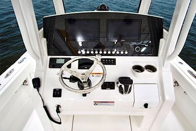 - Factory-Installed Garmin® 26XO Premium Fish Package: Dual 12’’ GPSMAP® 8612 XSV Touchscreen Display, Airmar® B150 CHIRP Transducer, and VHF 215 Radio with 8’ Antenna*