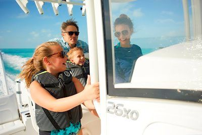 The Regulator 26XO is a center console crossover built for adventures, giving you easy access to lakes, bays, and skinny waters, as well as the capability to head offshore when the time is right. More than 122 square-feet of deck space, spacious seating, and generous storage provide fishability and family comfort. Engine options including single Yamaha 300 or 425, both with hydraulic jackplate option, give you the power to extend your days on the water. Integrated flush-folding rear cockpit seats convert to a casting platform, with the option to add a versatile 72" trolling motor with GPS Autopilot and 10-foot Power Pole Blade for shallow water anchoring. Built-in coolers, stand-up head compartment, forward sun shade option, and optional removable watersports tow bar allow you to stay and play until the sun goes down.