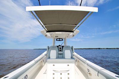 - Fiberglass T-Top with Surfboard Edges, Electronics Box, Integrated Navigation/Dock Lighting, Spreader Lights, and Multi-Colored LED Lights – Complete with Integrated, Vented, Wraparound Windshield and Windshield Wiper/Washer