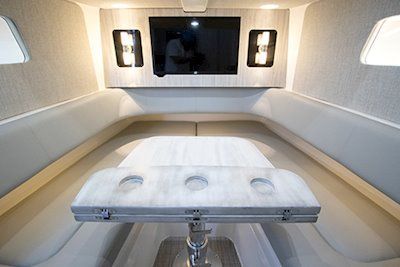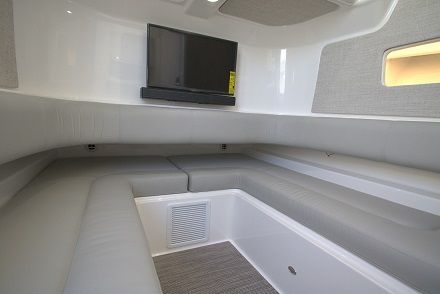 With more fishboxes and rod holders-per-foot than any boat in our fleet – you’ll be ready for the offshore bite. Relaxation is never far away thanks to abundant forward seating, forward settee with extra deep cooler, and convertible electric pedestal sun bed/table.